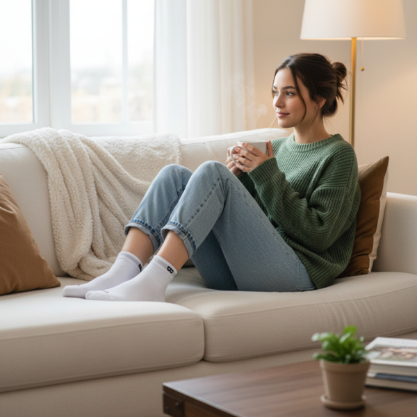 Onze enkelsokken zijn gemaakt van een premium mix van organisch katoen en polyester, wat zorgt voor een ademende en zweetbestendige ervaring.